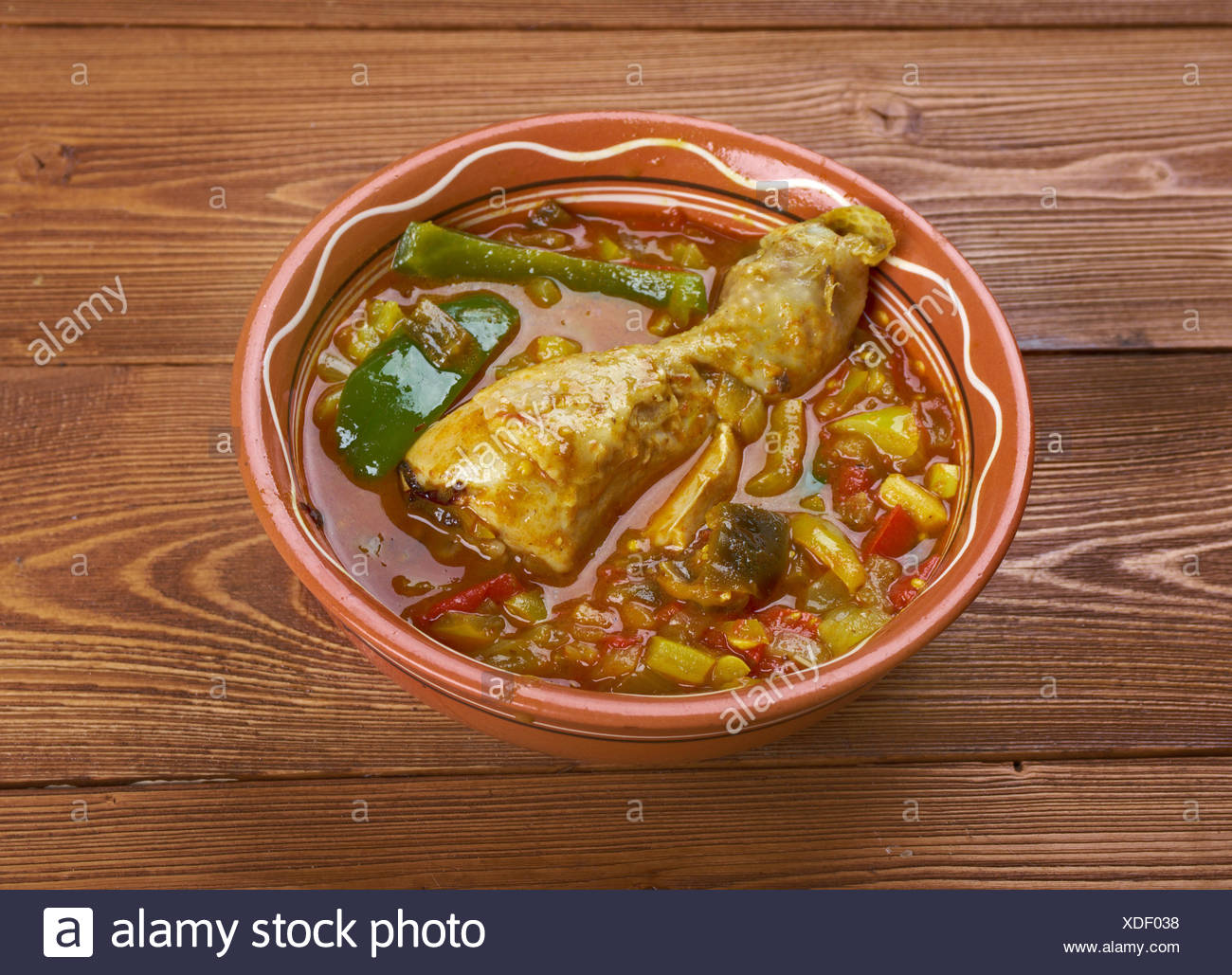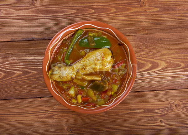 Also known as chicken muamba, this is a spicy, somewhat oily stew made with with palm oil or palm butter, garlic, chilis and okra.